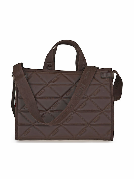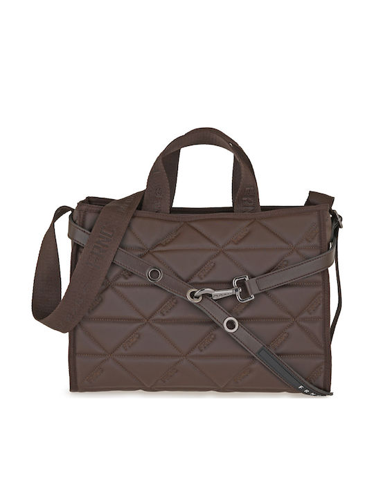 Γυναικεία τσάντα της εταιρείας FRNC σε καφέ χρώμα με καπιτονέ σχέδιο. Ιδανική επιλογή για όλες τις ώρες της ημέρας, μπορεί να κρατηθεί στο χέρι, προσδίδοντας στυλ.