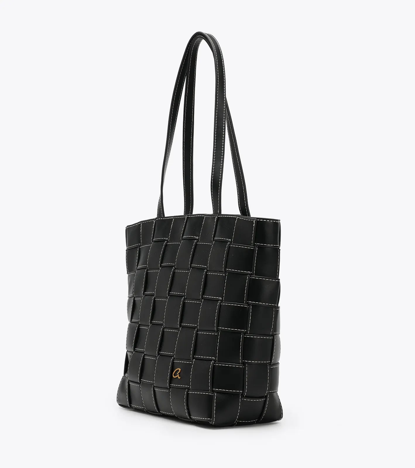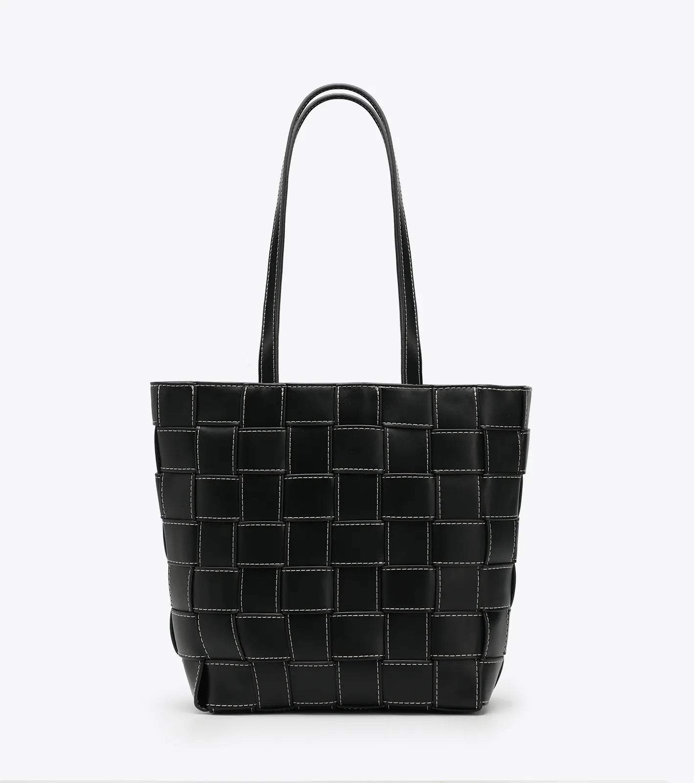 Γυναικεία τσάντα Bohdi, κατασκευασμένη από τεχνόδερμα με πλεκτή τεχνική. Διαθέτει κράτημα με μακριά διπλά χερούλια για να φορεθεί άνετα στον ώμο. Εσωτερικά διαθέτει αποσπώμενο τσεπάκι με φερμουάρ για οργάνωση μικρών αντικειμένων. Εξωτερικά διακοσμείται με γαζιά και μεταλλίκο στοιχείο 'a'. Μία ιδιαίτερη τσάντα για εμφανίσεις που θα ξεχωρίσουν.
