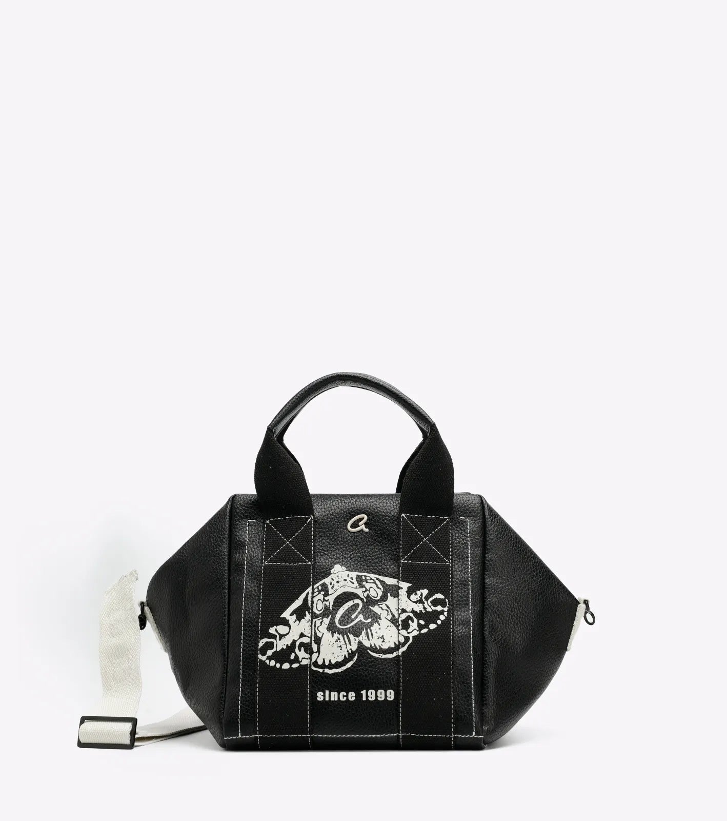 Γυναικεία τσάντα χειρός Malin, κατασκευασμένη από τεχνόδερμα υψηλής ποιότητας. Είναι επενδυμένη με φόδρα εσωτερικά, και περιέχει ανοιχτές θήκες και τσέπη με φερμουάρ για οργάνωση. Διαθέτει κράτημα με διπλά χερούλια και επιπλέον αποσπώμενο υφαντό ιμάντα για να κρατηθεί και ως χιαστί. Εξωτερικά διακοσμείται με στάμπα σε σχήμα πεταλούδας. Ασφαλίζει με διπλό φερμουάρ. Σχεδιασμένη σε τέτοιο σχήμα ώστε να χρησιμοποιηθεί εύκολα και ως τσάντα ταξιδιού.