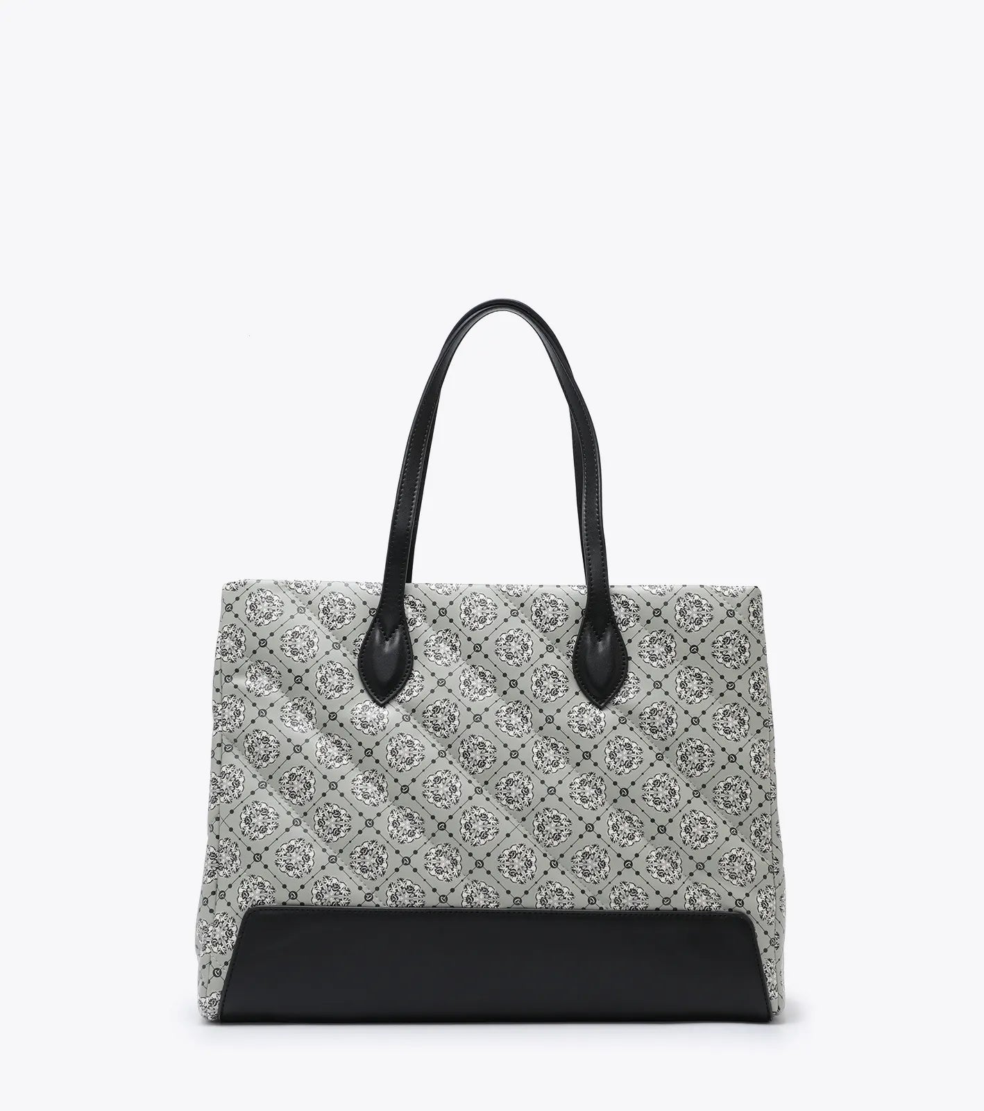 Γυναικεία τσάντα ώμου Malin με διπλά χερούλια και τύπωμα με πεταλούδες Axel. Είναι κατασκευασμένη από υψηλής ποιότητας τεχνόδερμα με ραφές και γέμιση puffer. Εσωτερικά είναι επενδυμένη με φόδρα και διαθέτει δύο ανοιχτές θήκες και μία τσέπη με φερμουάρ, για διευκόλυνση στην οργάνωση μικρών αντικειμένων. Εξωτερικά διαθέτει κούμπωμα στα πλαϊνά, για τη διαμόρφωση της δομής της. Κλείνει με μεταλλικό φερμουάρ. Μία ιδιαίτερη και άνετη τσάντα, κατάλληλη για κάθε μέρα.