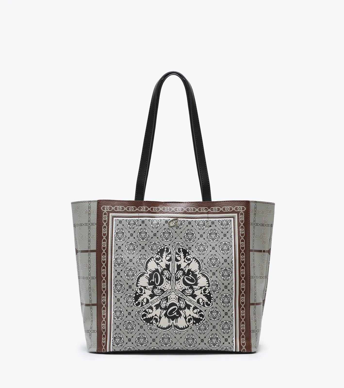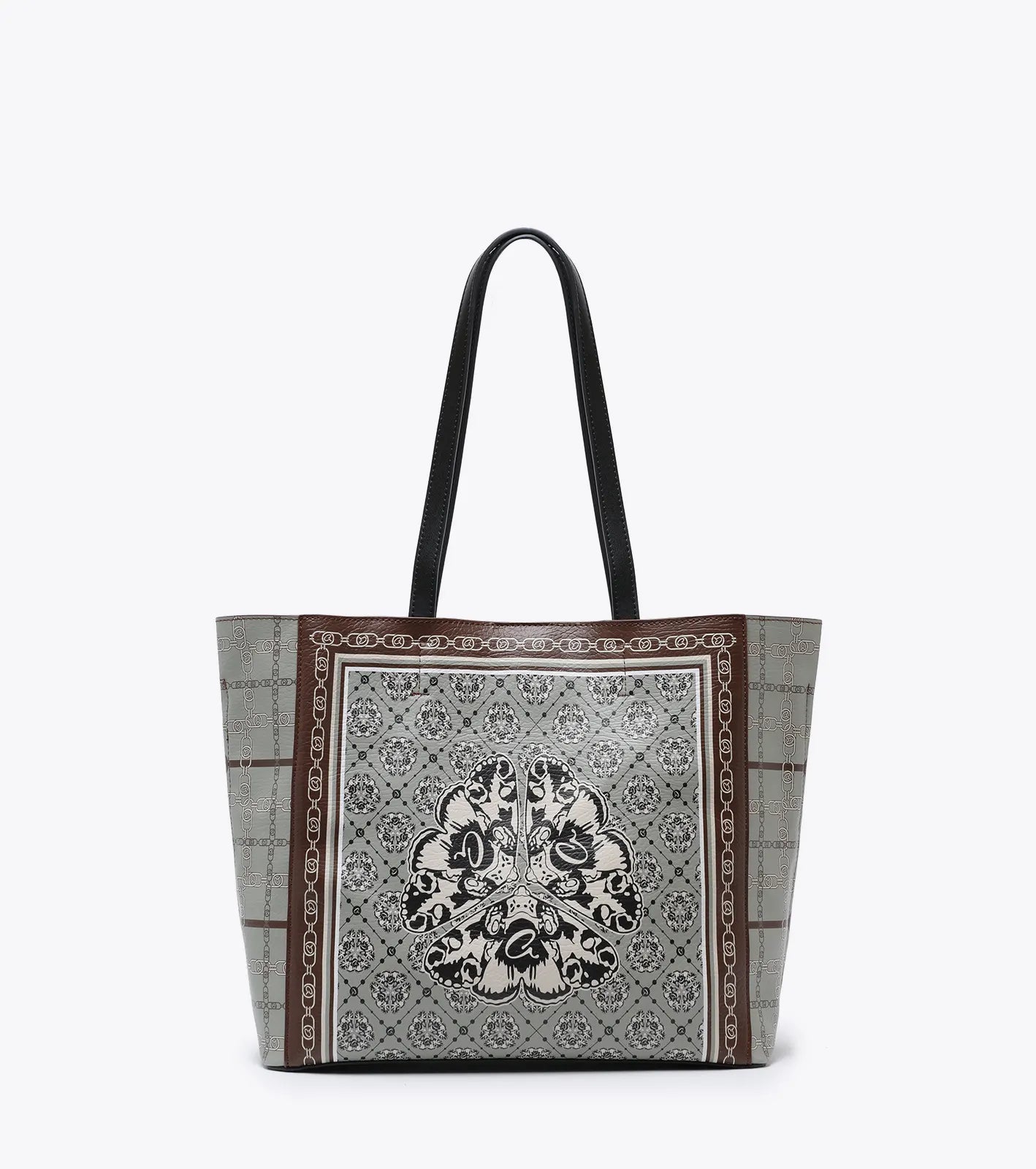 Γυναικεία τσάντα ώμου Malin από τεχνόδερμα με τύπωμα πεταλούδα και αλυσίδα axel. Εσωτερικά διαχωρίζεται σε τρία τμήματα με δύο πλαινά και ένα κεντρικό που περιλαμβάνει φόδρα, μία κλειστή θήκη με φερμουάρ και δύο ανοιχτές θήκες για οργάνωση μικρών αντικειμένων. Έχει κράτημα με διπλά χερούλια και ασφαλίζει με φερμουάρ και μαγνητικά κουμπώματα. Επιπλέον, στο τελείωμά της διαθέτει μεταλλικά τελειώματα για την αποτροπή της φθοράς της. Μία πάρα πολύ ιδιαίτερη τσάντα ώμου με ξεχωριστή εμφάνιση για ξεχωριστές εμφανίσεις.