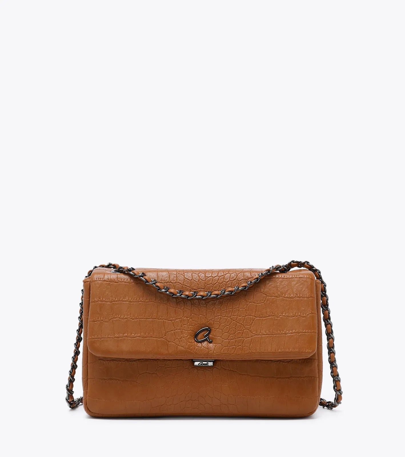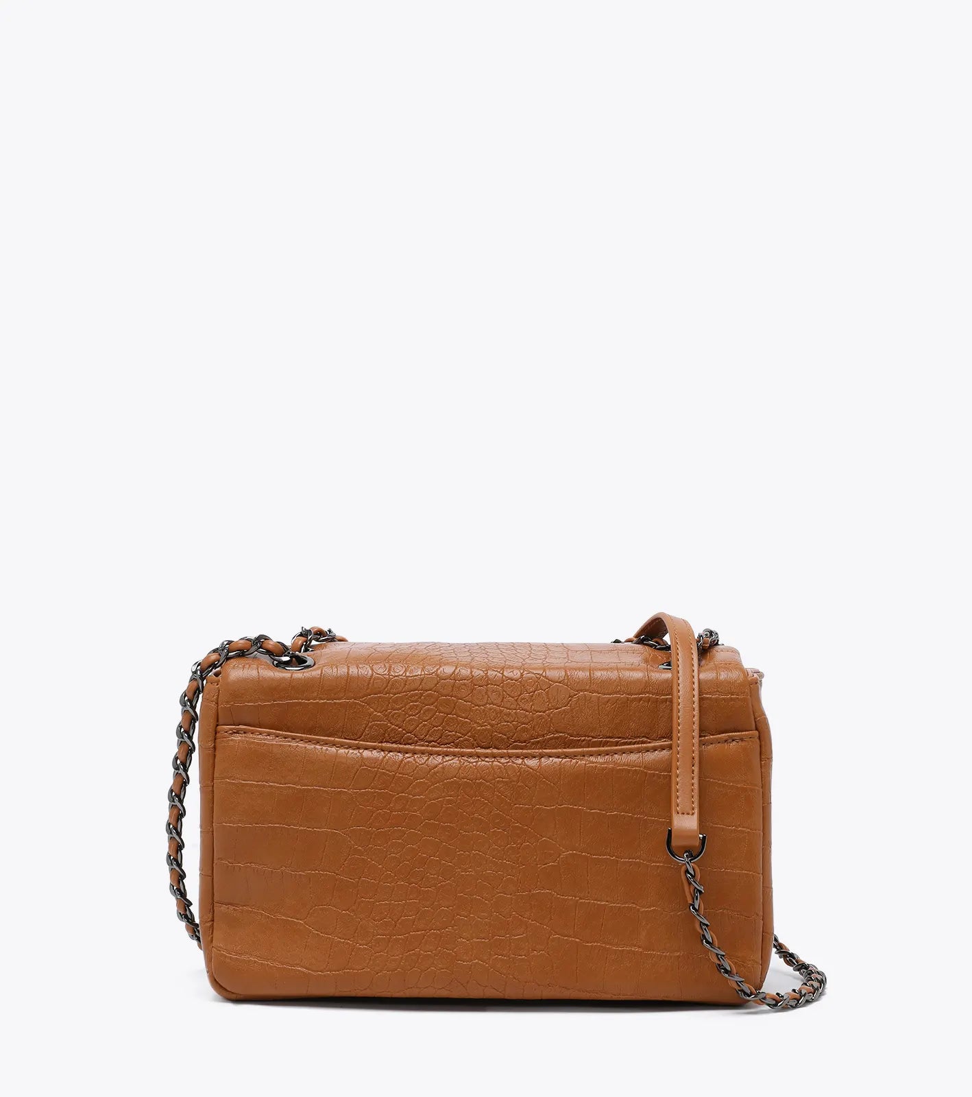 Τσάντα ώμου γυναικεία Melitta, από τεχνόδερμα με κροκό όψη. Εσωτερικά είναι επενδυμένη με φόδρα και διαχωρίζεται σε δύο χώρους που περιλαμβάνουν, θήκη και τσέπη φερμουάρ και ανοιχτή θήκη για μικρά αντικείμενα. Η αλυσίδα είναι πλεγμένη με λεπτομέρεια από τεχνόδερμα, και μπορεί να προσαρμοστεί ώστε να φορεθεί και ως χιαστί. Με πίσω τσέπη εξωτερικά για εύκολη πρόσβαση. Κλείνει με μεταλλικό κούμπωμα. Μία τσάντα που μπορεί εύκολα να συνδυαστεί με κάθε εμφάνιση.