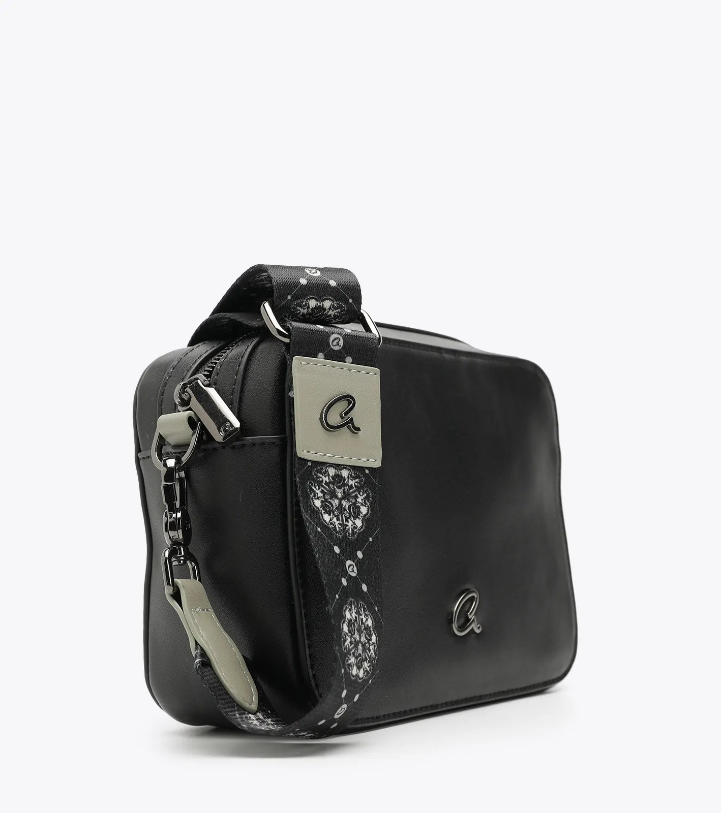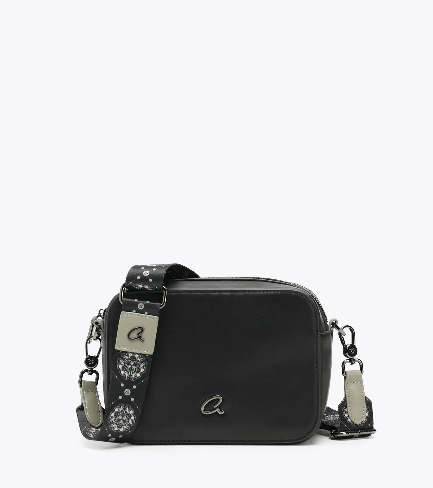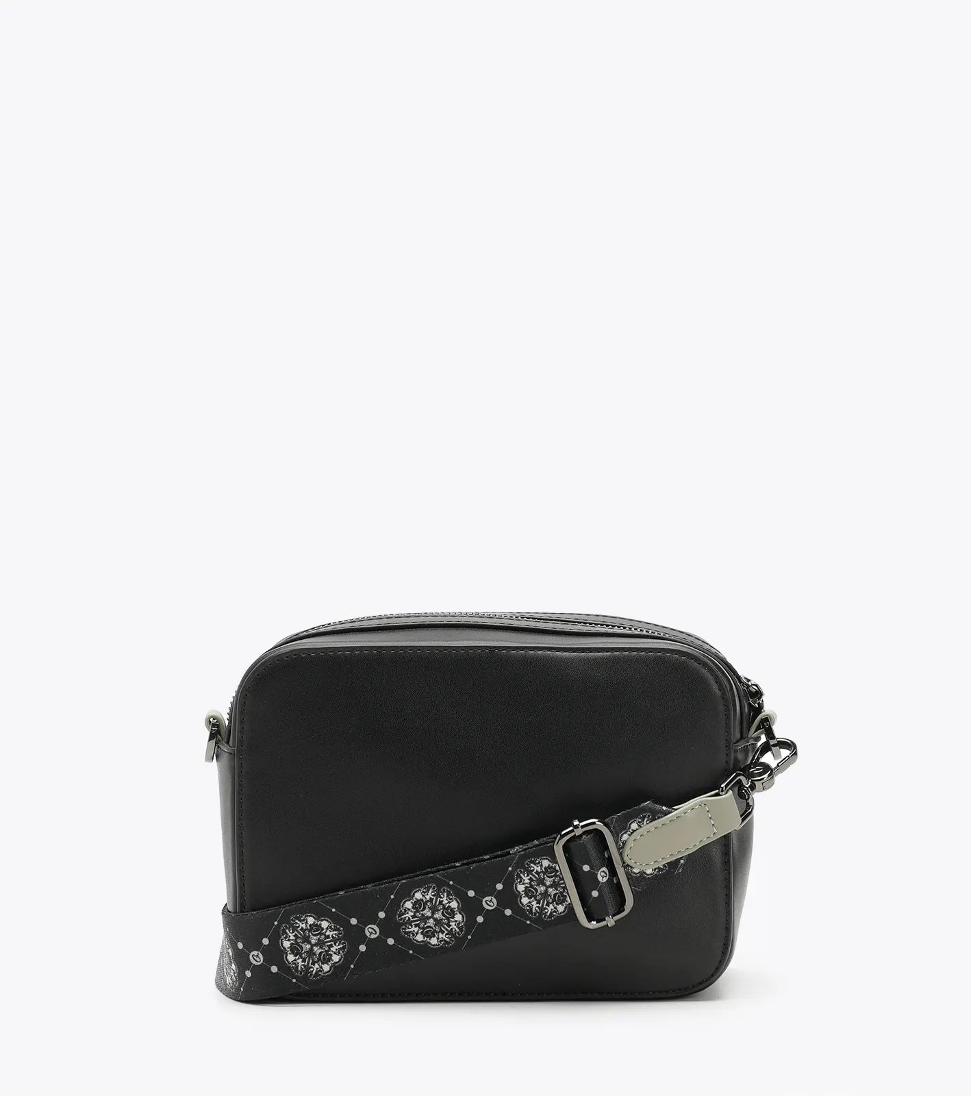 Γυναικείο τσαντάκι χιαστί Malin από τεχνόδερμα με λεία υφή, Εσωτερικά περιέχει μία θήκη με φερμουάρ και μία ανοιχτή για οργάνωση ενώ είναι επενδυμένο με φόδρα. Διαθέτει φαρδύ αποσπώμενο ιμάντα για άνεση στη μετακίνηση, ο οποίος διακοσμείται με τύπωμα πεταλούδα axel και μπορεί να ρυθμιστεί στο κατάλληλο ύψος. Κλείνει με μεταλλικό φερμουάρ. Το σχήμα του βοηθάει στην οργάνωση και το καθιστά ιδανικό για κάθε μέρα.