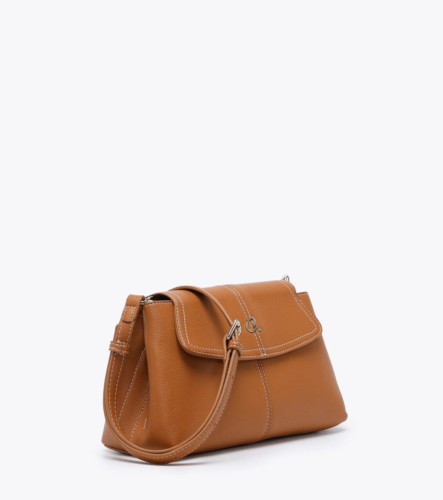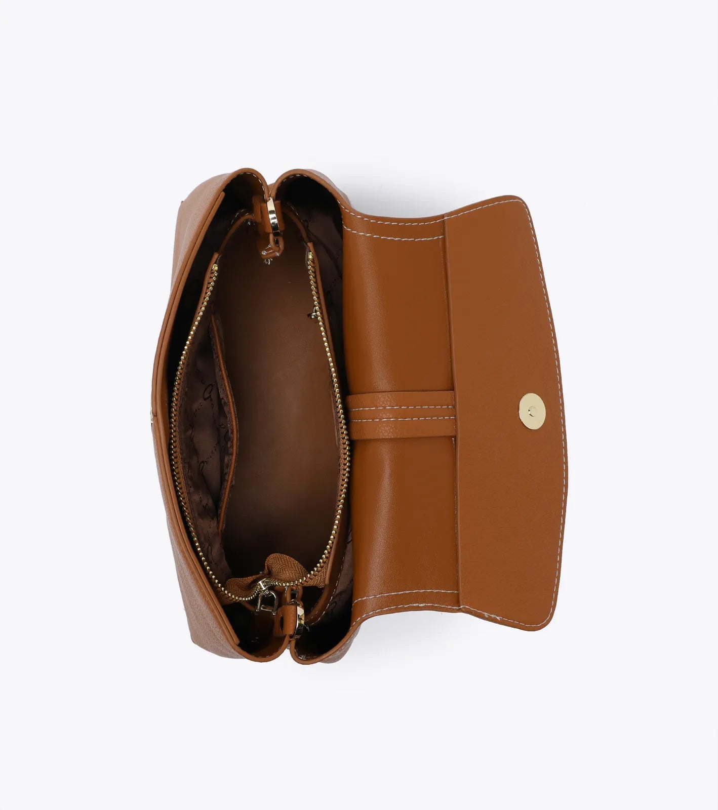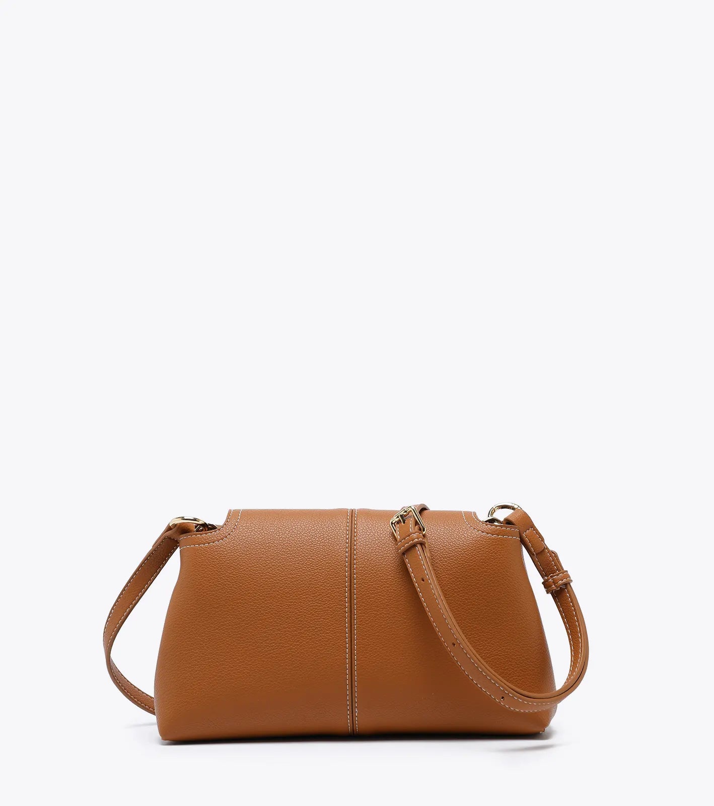 Γυναικεία τσάντα χιαστί Claudine, κατασκευασμένη από τεχνόδερμα με μαλακή δομή και διακοσμημένη με λευκά γαζιά. Εσωτερικά είναι επενδυμένη με φόδρα, διαχωρίζεται σε τρία τμήματα και περιέχει τσέπη με φερμουάρ. Κλείνει με καπάκι και φερμουάρ. Το λουράκι μπορεί να προσαρμοστεί και να αφαιρεθεί για να κρατηθεί και ως χειρός. Μία πολύ άνετη τσάντα, κατάλληλη για κάθε μέρα.