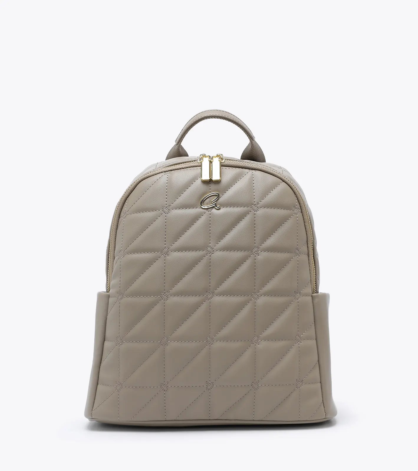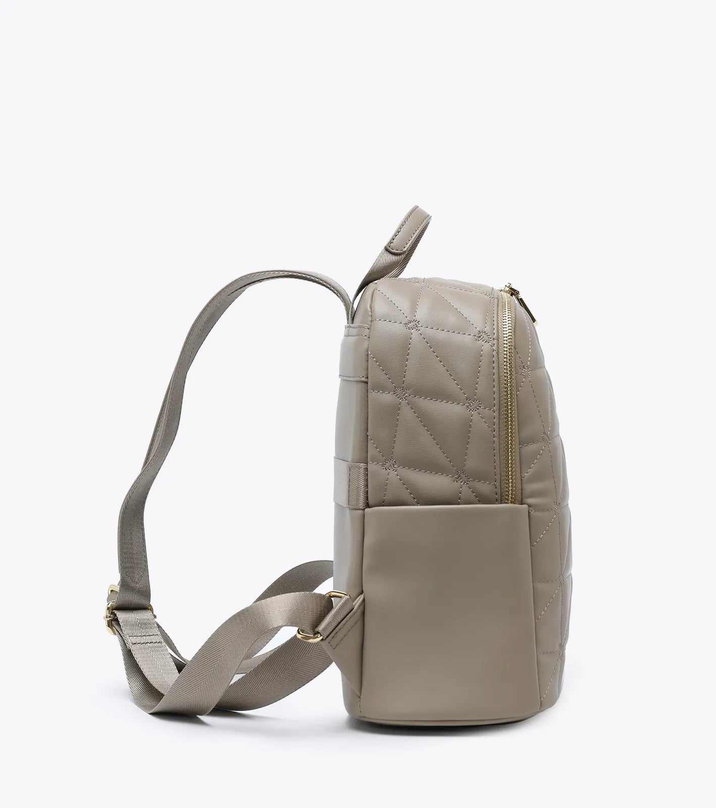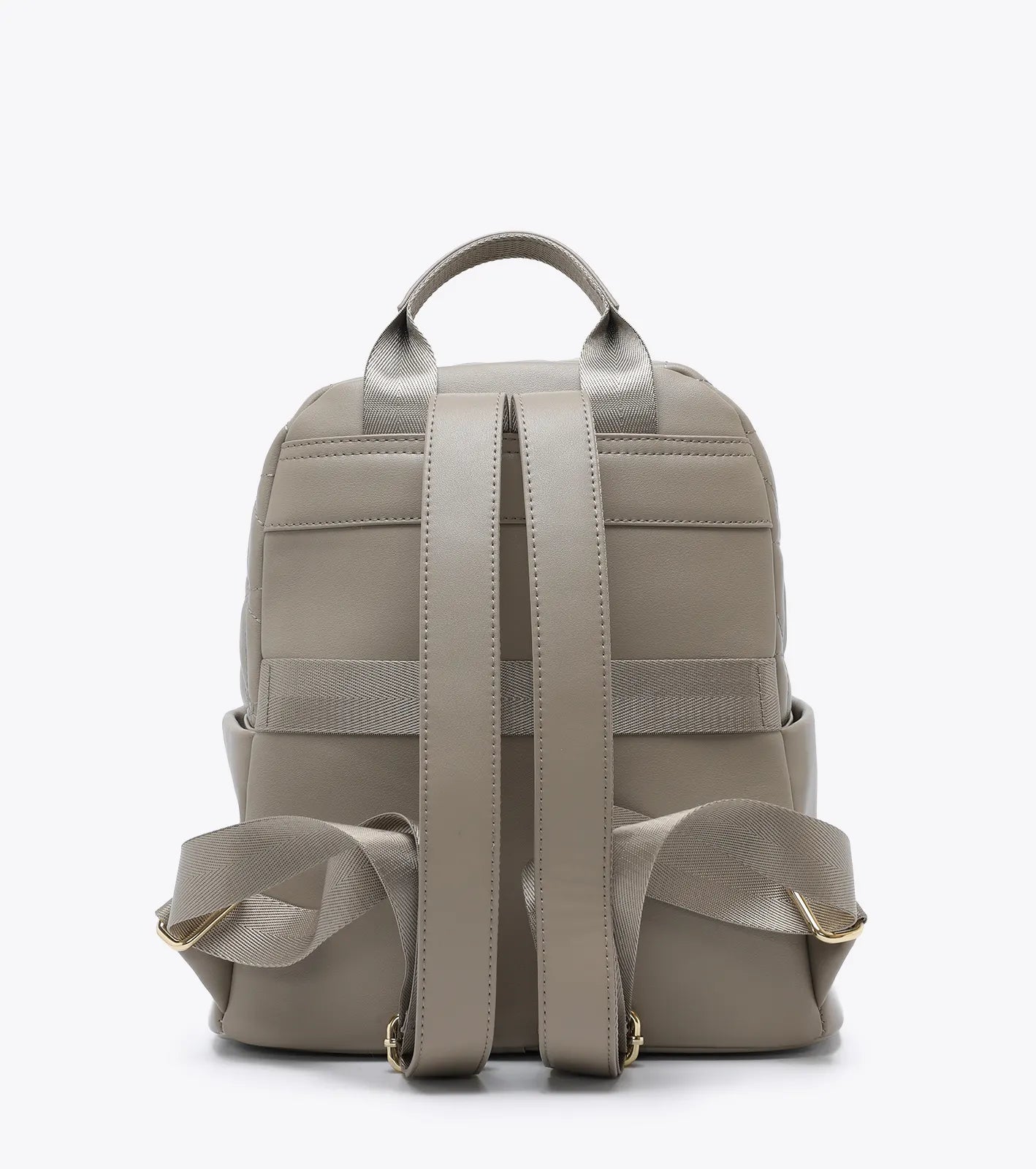 Γυναικείο σακίδιο πλάτης Garbina κατασκευασμένο από τεχνόδερμα υψηλής ποιότητας με ραφές 'a' που του πρσφέρουν καπιτονέ υφή. Ειναί σχεδιασμένο σε μεγάλο μέγεθος για να διαθέτει χωρητικότητα και άνεση στην οργάνωση. Ασφαλίζει με διπλό μεταλλικό φερμουάρ σε χρυσή απόχρωση. Εσωτερικά είναι επενδυμένο με φόδρα και περιέχει μία κλειστή θήκη με φερμουάρ και δύο ανοιχτές για μικρά αντικείμενα. Εξωτερικά έχει θέσεις στα πλαϊνά, φαρδιούς ιμάντες πλάτης που μπορούν να ρυθμιστούν, και έξτρα ιμάντα για στερέωση σε βαλίτσα. Ένα πολύ ιδιαίτερο σακίδιο, με ξεχωριστή όψη, κατάλληλο για κάθε στυλ.