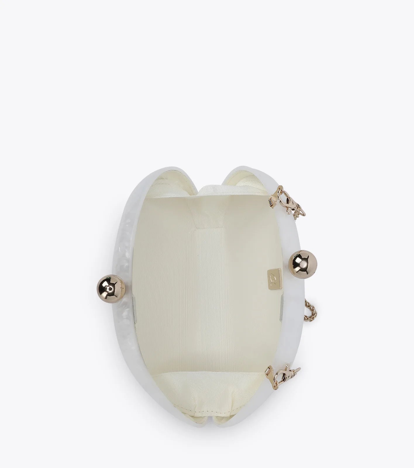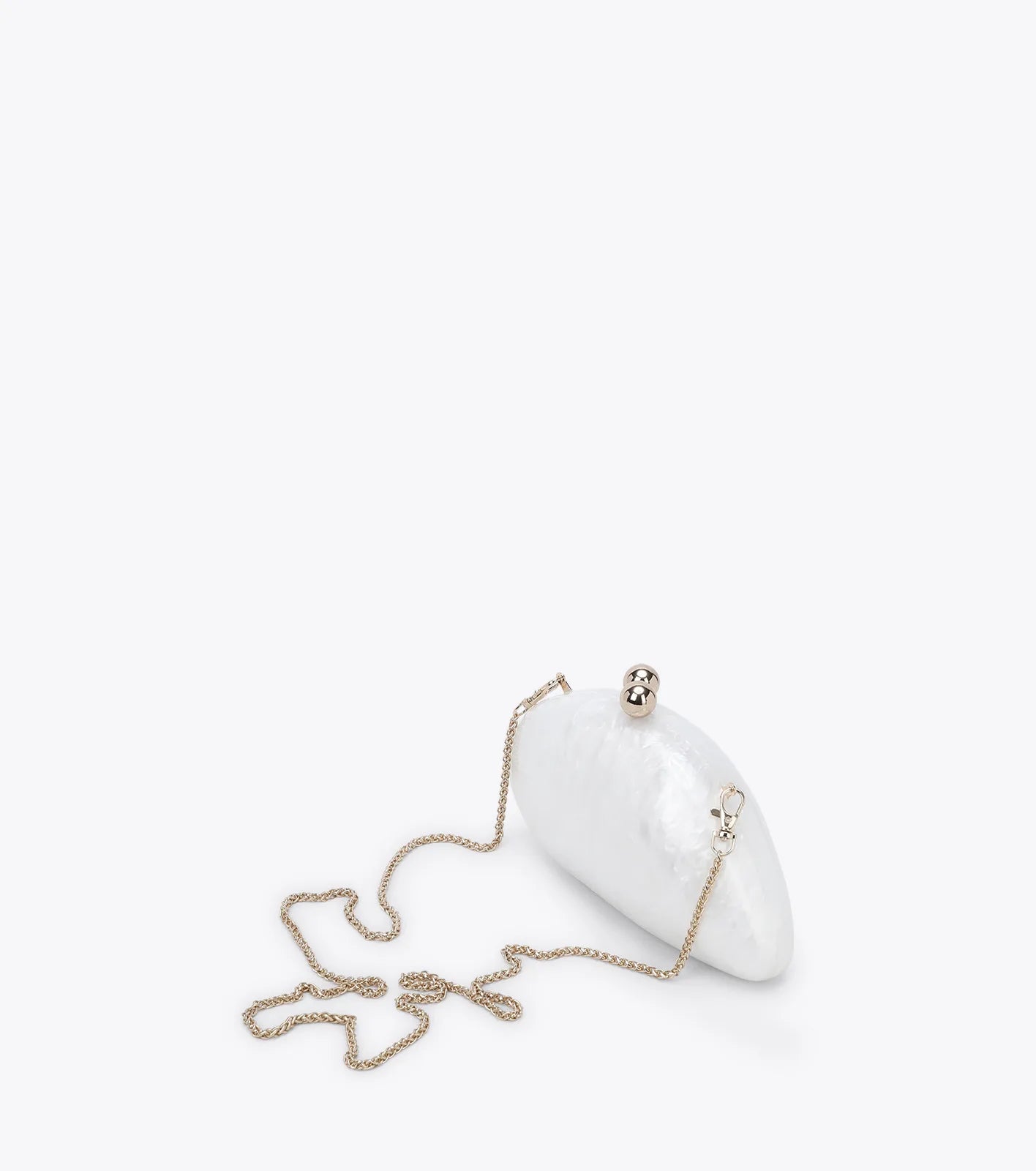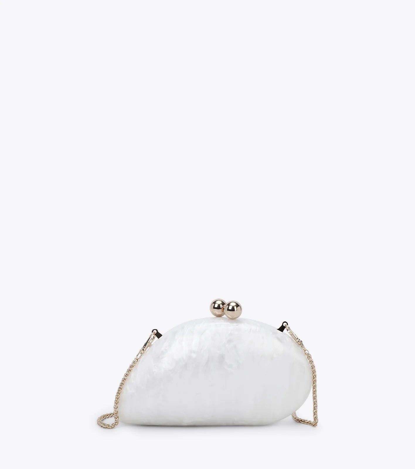 Γυναικείο βραδινό τσαντάκι με χρυσές λεπτομέρειες και χρυσή αποσπώμενη αλυσίδα. Κλείνει με αόρατο κούμπωμα.