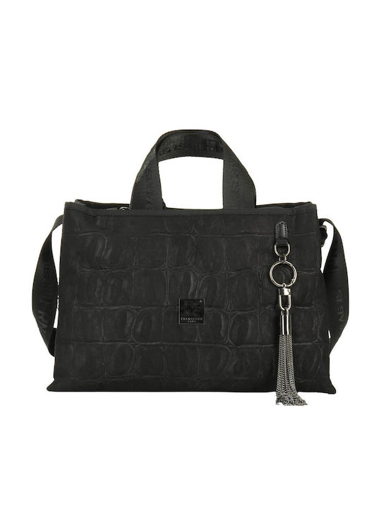 Γυναικεία τσάντα της εταιρείας FRNC κατασκευασμένη από ύφασμα σε μαύρο χρώμα. Ιδανική επιλογή για όλες τις ώρες της ημέρας, φοριέται περασμένη στον ώμο. Διαθέτει αφαιρούμενο και ρυθμιζόμενο λουράκι.