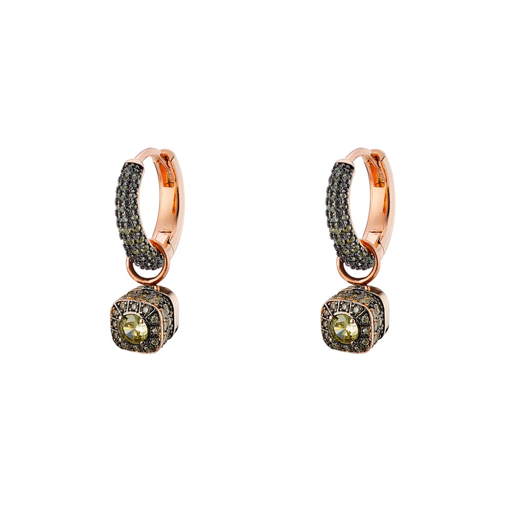 Σκουλαρίκια Candy Bis μεταλλικά ροζ χρυσά κρικάκια με olive ζιργκόν